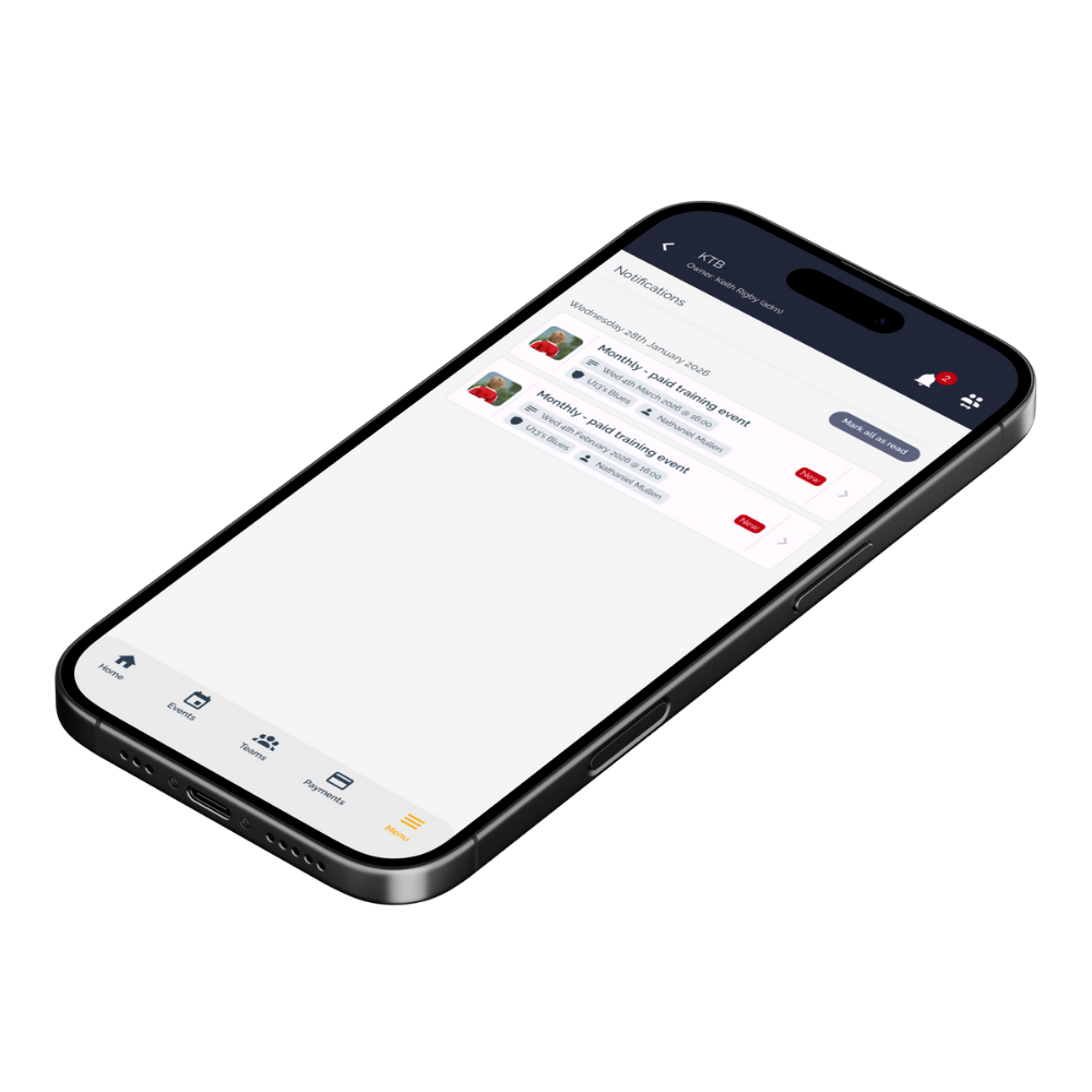 Make sure members never miss an event with instant notifications. As soon as you open an Event up for attendees to confirm their availability, the App will push a notification to your members phone. Members can also view notification messages in their Alerts inbox.